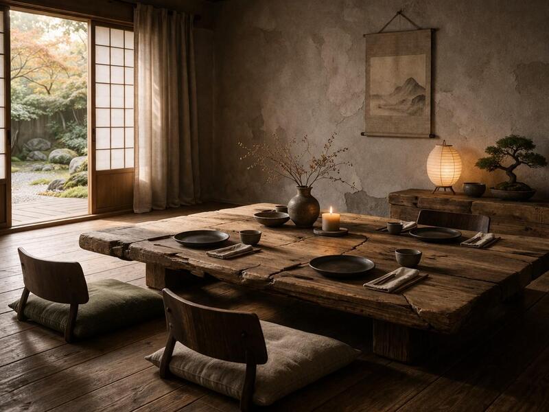 Как привнести ваби-саби в свой интерьер? Начните с материалов. Отдавайте предпочтение натуральным — дереву, камню, льну, хлопку. Не бойтесь неровностей: потёртости на мебели, трещинки на вазе, асимметрия в декоре. Это не дефекты, а знаки жизни.