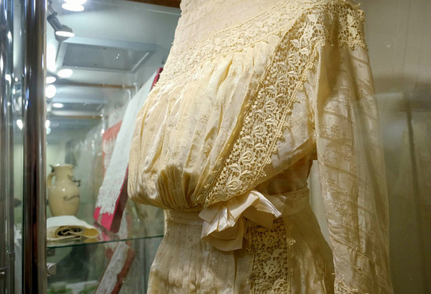 Среди экспонатов – крупные кружевные изделия, такие как полушалок диаметром 220 сантиметров и полотенце длиной более двух метров. Также представлены изящные аксессуары, детские наряды и свадебные платья начала XX века, которые поражают своей красотой и мастерством исполнения.